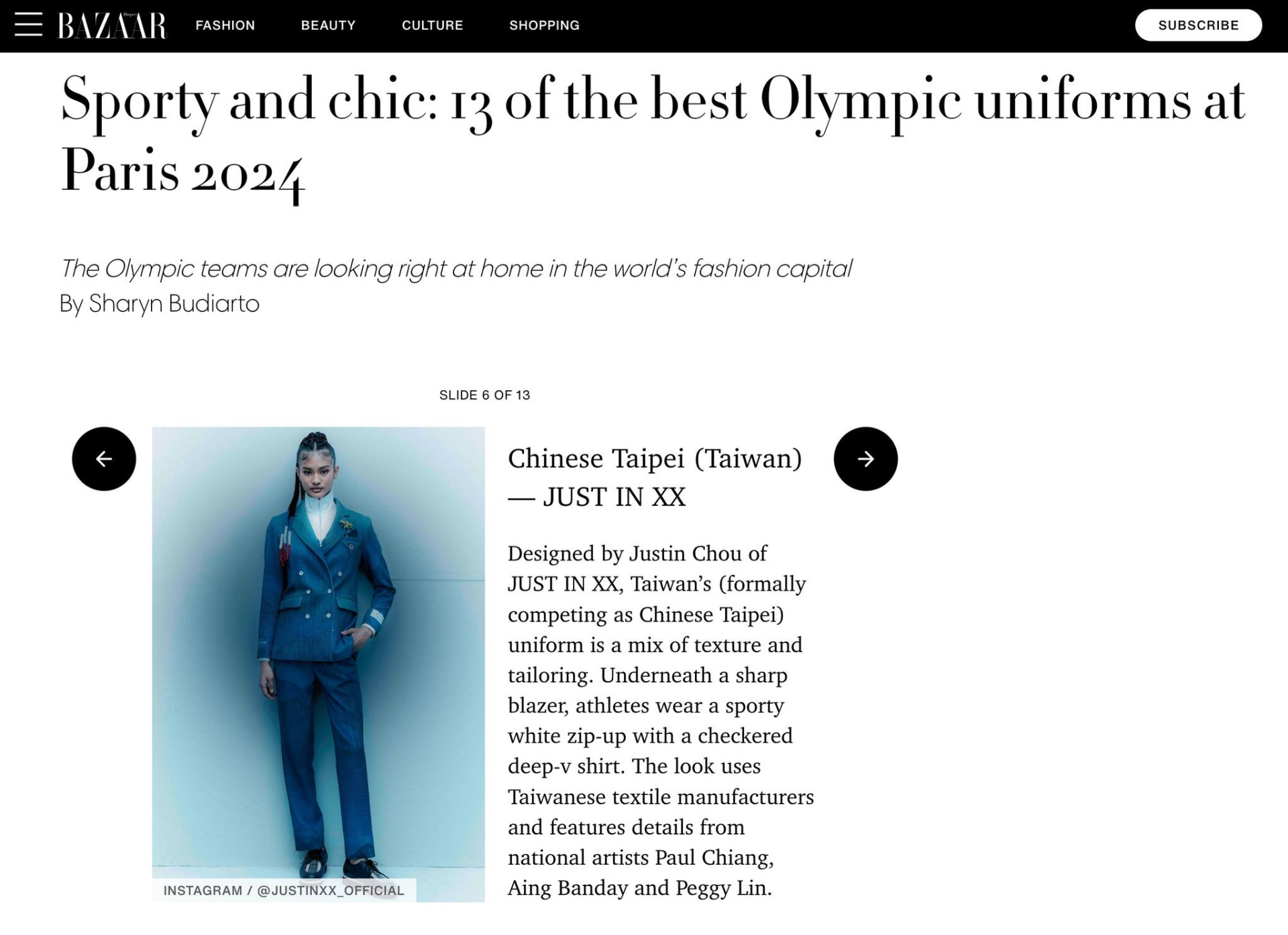 We are delighted that Chinese Taipei's Olympic uniform has attracted significant attention worldwide and has been named in #Forbes' Top 10 most fashionable Paris Olympic uniforms.